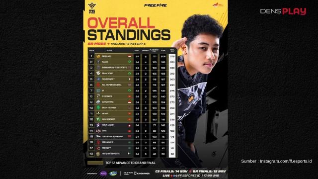 Sementara itu, rekan sesama wakil Indonesia, RRQ Kazu, tampil mendominasi dengan kokoh di puncak klasemen. Tim berjuluk King of Kings itu mengumpulkan 379 poin, unggul cukup jauh dari para pesaingnya.