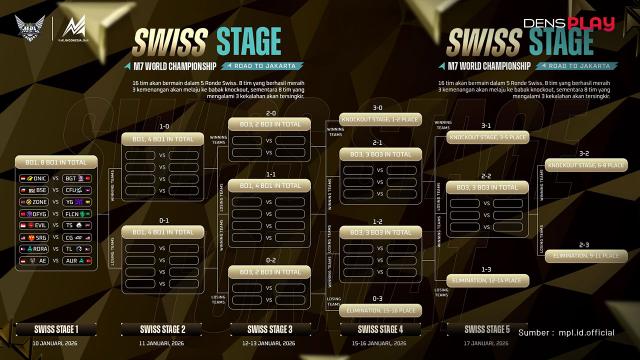 M7 World Championship tengah berlangsung mulai tanggal 3 hingga 25 Januari 2026. Kejuaraan dunia MLBB ini diawali dengan babak Wild Card yang digelar pada 3-6 Januari 2026 di MPL Arena, XO Hall, Jakarta.