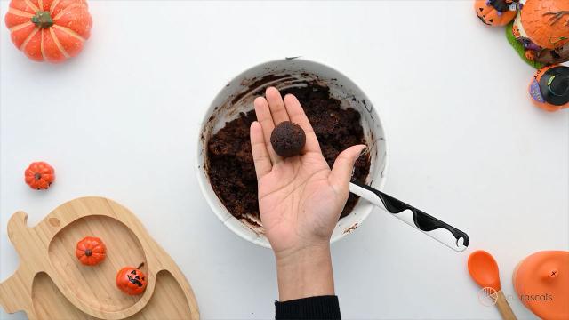 - Bulat-bulatkan adonan dan bentuk menggunakan stik lolipop hingga seperti labu