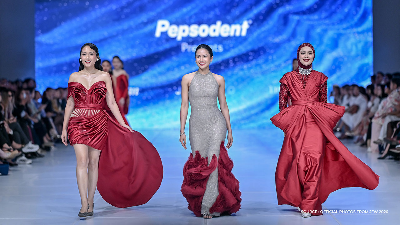 Maudy Ayunda tampil memukau di runway JFW 2026 bersama Tim Pepsodent Ultra White dalam kampanye “The Brightest of Them All” pada Kamis, 30 Oktober 2025. Dikenal sebagai musisi dan aktris, Maudy kini menantang diri menjajal dunia mode dengan pesona yang tak kalah menawan. Ia tampil anggun dengan gaun berkilau rancangan Studio Vian, memadukan kemewahan dan karakter kuat lewat potongan siluet mermaid yang menonjolkan lekuk tubuh dengan elegan.