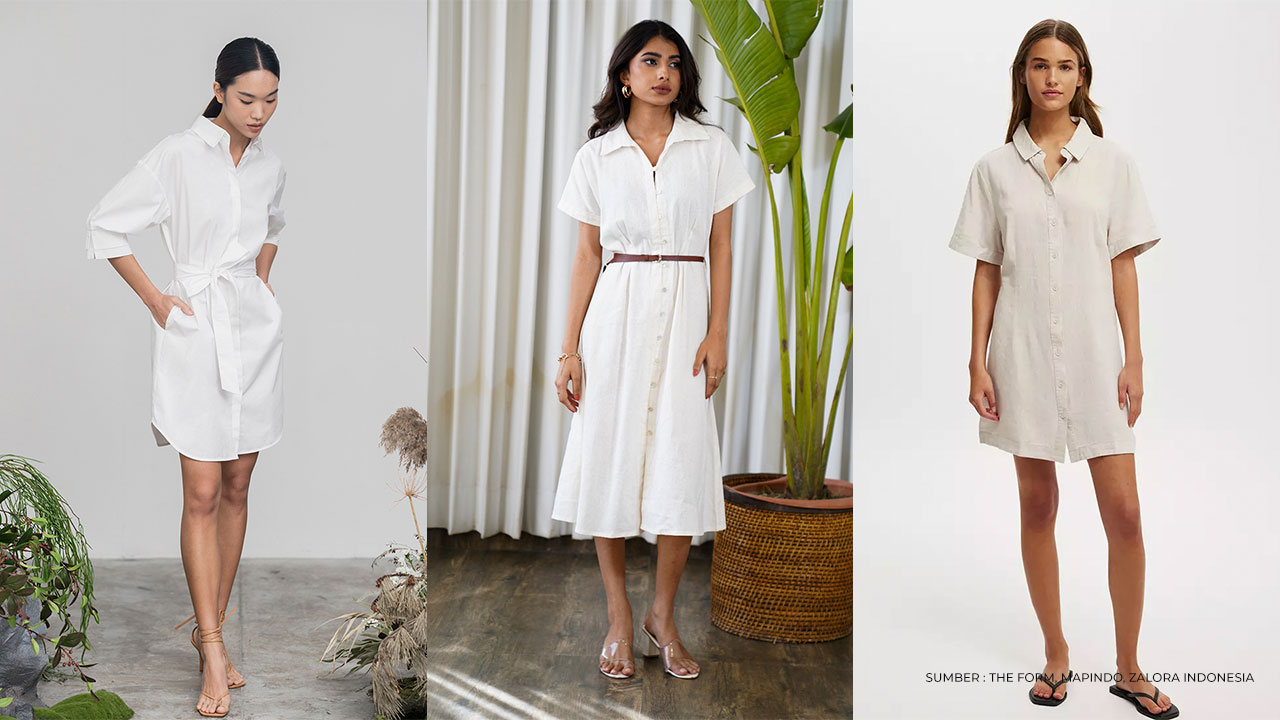 Gaun kemeja berwarna pastel seperti putih, cream, dan lainnya bisa jadi pilihan sempurna untuk clean outfit. Model seperti ini memberi santai namun tetap elegan, sehingga cocok dipakai saat bekerja atau hangout. Agar tidak terkesan monoton, kamu bisa menambahkan belt agar tubuh terlihat lebih tegas dan proporsional.