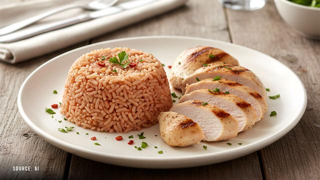 Untuk pilihan menu diet sehat dan bergizi, kamu bisa mengonsumsi nasi merah dan dada ayam tanpa kulit. Pasalnya, nasi merah memiliki kandungan serat dan vitamin B jika dibandingkan dengan nasi putih. Makanan ini membantu menjaga pencernaan tetap sehat, dan energi bertahan lebih lama.