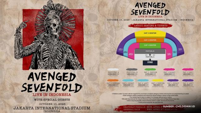 Dengan kembalinya Avenged Sevenfold ke Indonesia, tentu para penggemar perlu bersiap untuk war tiket yang akan dimulai pada April 2026.